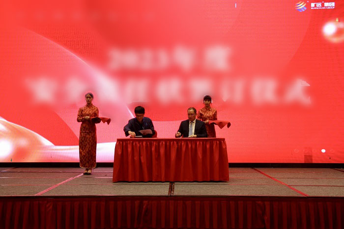 萬無一失,一失萬無。為明確安全生產(chǎn)工作責(zé)任、錨定前進(jìn)方向,細(xì)化落實(shí)各單位安全生產(chǎn)任務(wù)目標(biāo),堅(jiān)決打贏2023年安全生產(chǎn)目標(biāo)攻堅(jiān)戰(zhàn)。年會(huì)現(xiàn)場,王董分別與集團(tuán)各分、子公司總經(jīng)理、各職能部門及安全環(huán)境部負(fù)責(zé)人簽定安全生產(chǎn)責(zé)任狀,確保公司2023年各項(xiàng)安全管理工作順利開展。